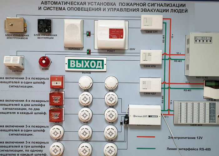 Монтаж, ремонт и техническое обслуживание автоматической пожарной сигнализации и системы оповещения о пожаре, монтаж систем пожаротушения и дымоудаления, огнезащита деревянных конструкций, металлоконструкций и тканей, разработка и изготовление фотолюминесцентных планов эвакуации, бучение мерам пожарной безопасности, составление проекта декларации пожарной безопасности